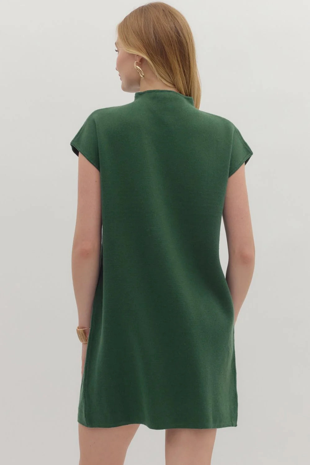 Soft Knit Dress with Mock Neck and Cap Sleeves