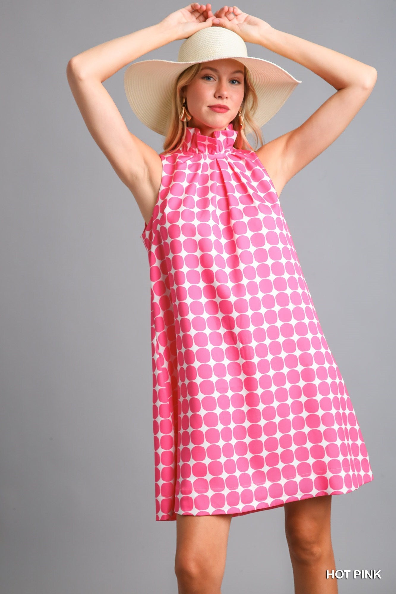 Hot Pink Geometric Halter Dress