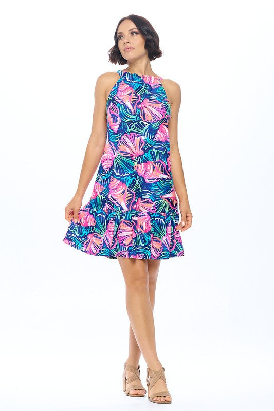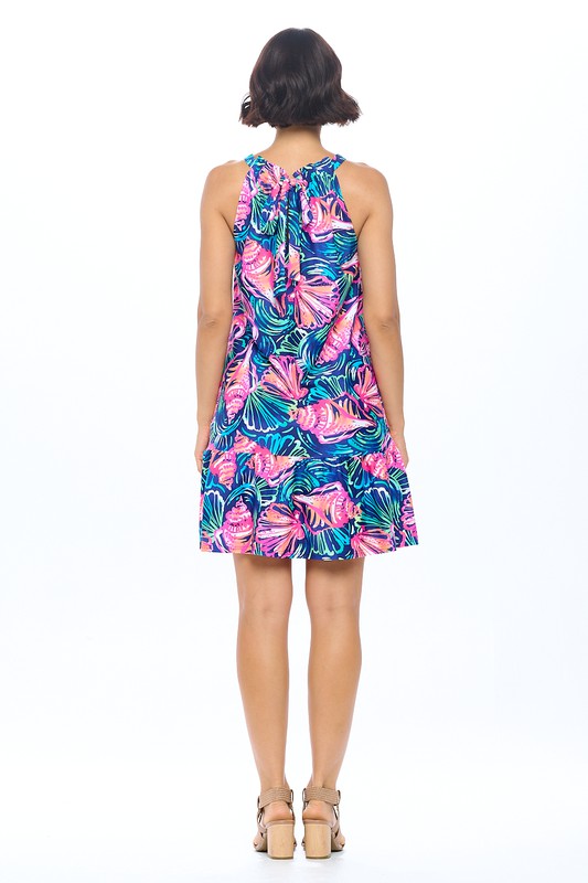 Tiered Shell Print Sleeveless Dress with Back Tie