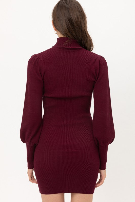 Turtleneck Sweater Dress with Balloon Sleeves