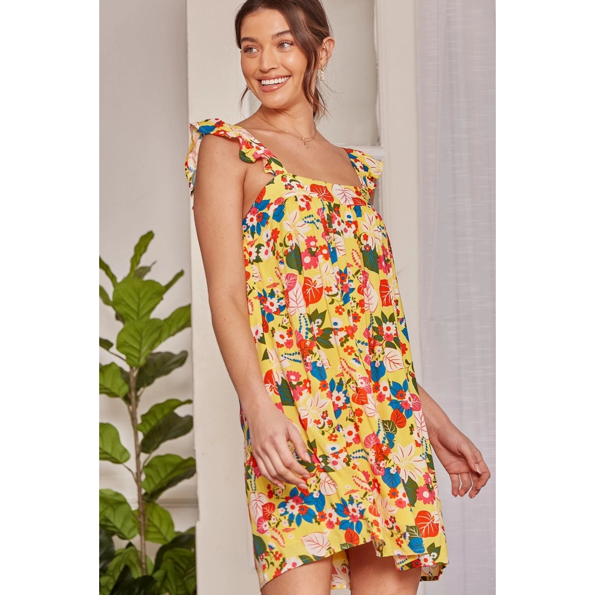 Yellow Tropical Floral Dress