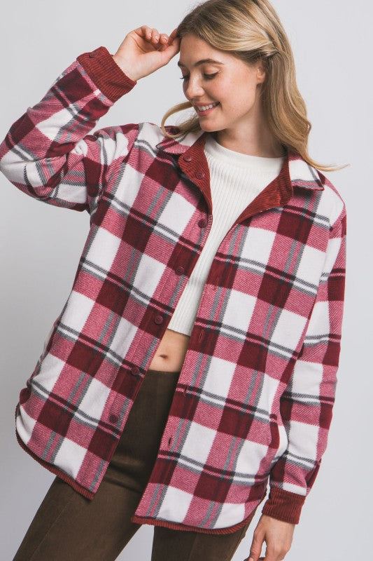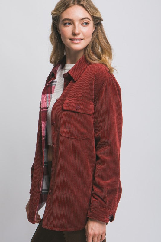 Corduroy Reversible Button Down Jacket with Plaid Interior