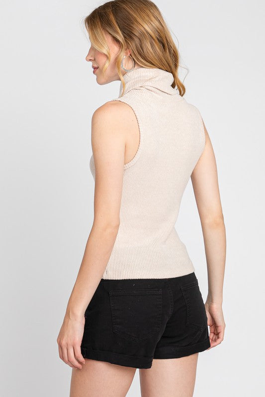 Oatmeal Sleeveless Turtleneck Top