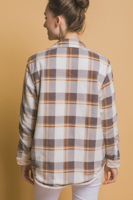 Corduroy Reversible Button Down Jacket with Plaid Interior