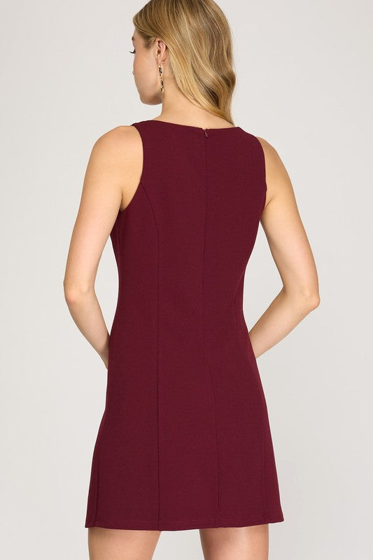 Sleeveless Heavy Knit Mini Dress With Side Slit Detail